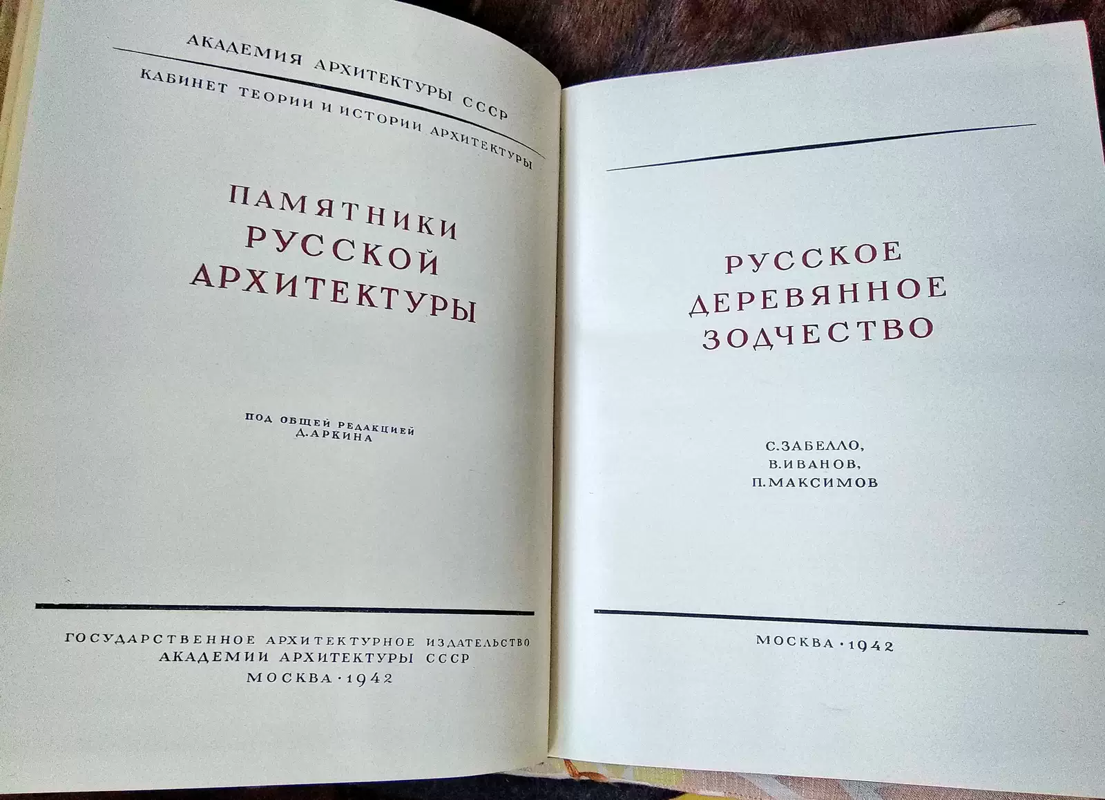 72 с. + более 216 с. иллюстраций. Твердый тканевый переплет. Очень большой 365х280 формат. Стоимость без учета доставки. Тираж 2000 экз. Стоимость: 55000р. КУПИТЬУникальный увесистый альбом о Русском деревянном зодчестве, изданный в самый разгар Великой Отечественной Войны, когда шли ожесточеннейшие бои под Ленинградом, под Москвой, Ржевская битва (Вяземский котел), оборона Сталинграда, битва за Кавказ, битва за Крым (оборона Севастополя), и в это же самое время советское правительство дает указание и издает на высочайшем для того времени полиграфическом уровне эту книгу, на мелованной бумаге, качество которой смогут превзойти уже после окончания Войны - лишь единичные издания! В текстовой части книги рассказано о конструктивных приемах, жилых и хозяйственных постройках, крепостных сооружениях, культовом зодчестве, хоромах, текст сопровождается иллюстрациями и схемами-чертежами. Далее идут библиография, географический указатель, предметный указатель, перечень иллюстраций. После этого более 216 страниц иллюстраций (462 ч/б, тональных и несколько цветных). Превосходное и редкое состояние для ценителей! Состояние: Отличное.